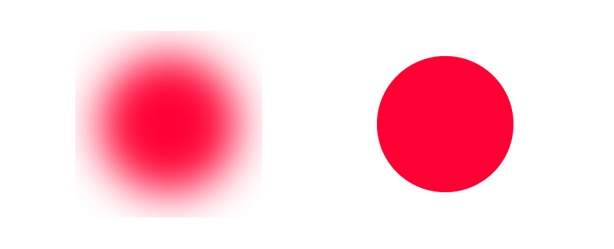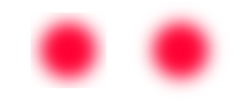 このとき、ぼかしの計算範囲が足りないと、オブジェクトの外側までぼかしが広がりきらず、結果として「四角い境界」が見えてしまう。という仕組みなんです。