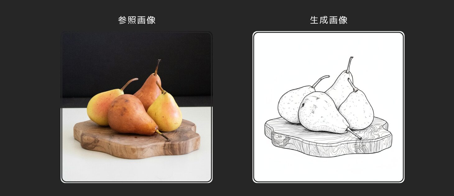 被写体(モチーフ)だけを抽出した、シンプルな線画を生成してくれました。